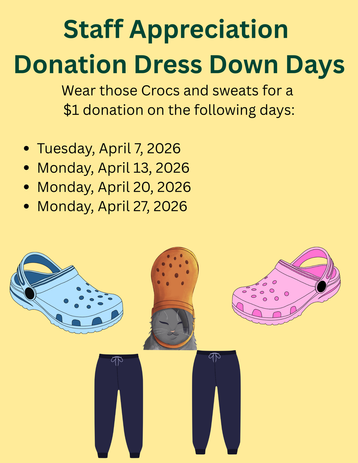 👟 Crocs & Sweats Day Fundraiser 🩳Our students are always asking to wear Crocs and sweats… now’s their chance!Students can donate to support our amazing Ehrhart Staff and earn the opportunity to...